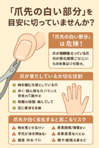 爪を切るとき、多くの人が「爪先の白い部分」を目安にしているのではないでしょうか?