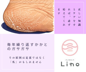 この季節になると、体感として約9割のお客様が「かかとのガサガサ」に悩んでおられます。