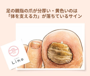 足の親指の爪は、体を支える力がきちんと使えているかを教えてくれる存在です。